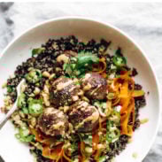 I’ve made a bunch of your recipes in the past, but this one was such a hit with my girlfriend that I felt inclined to offer my gratitude 🙂 I obviously enjoyed it immensely as well. The meatballs were superrrr super tasty, combined with the tangy carrots and the balance of the quinoa really made it a winner. An FYI to anyone else out there making this bowl, I couldn’t find Coconut Palm Sugar or Lemongrass paste…I used brown sugar and lemon zest instead…I think they filled in nicely. Thanks again, Lindsay! Keep killin’ it.