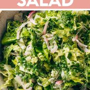 Crunchy, light, bright, and ultra-fresh. This French-inspired bistro salad is an absolute star as a side for nearly any dinner. Tender greens, fresh herbs, pickled onions, and a delicate vinaigrette on top.