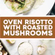 The best easy risotto – made in the oven! Served up with some garlic roasted mushrooms and a lemony arugula salad. YUM!