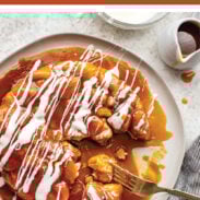 I usually save about 1/2 cup of the caramel for drizzling and dipping after it comes out of the oven.