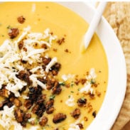 A canned pumpkin version of this soup hasn’t been tested in the Pinch of Yum kitchen yet. It could probably work, but as a note, it would require the soup to be transferred to the stovetop and you’d miss out on some of the delicious roasty flavors.