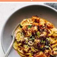 You may want to use more tofu depending on how many servings you are wanting to get out of this. I was fine with 12 ounces as 6 servings (just doing a small scoop of tofu on each pile of zoodles) but if you were super hungry you might want more.