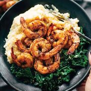 A picture of Spicy Shrimp with Cauliflower Mash and Garlic Kale