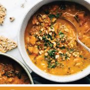 Spicy Peanut Soup with Sweet Potatoes + Kale.